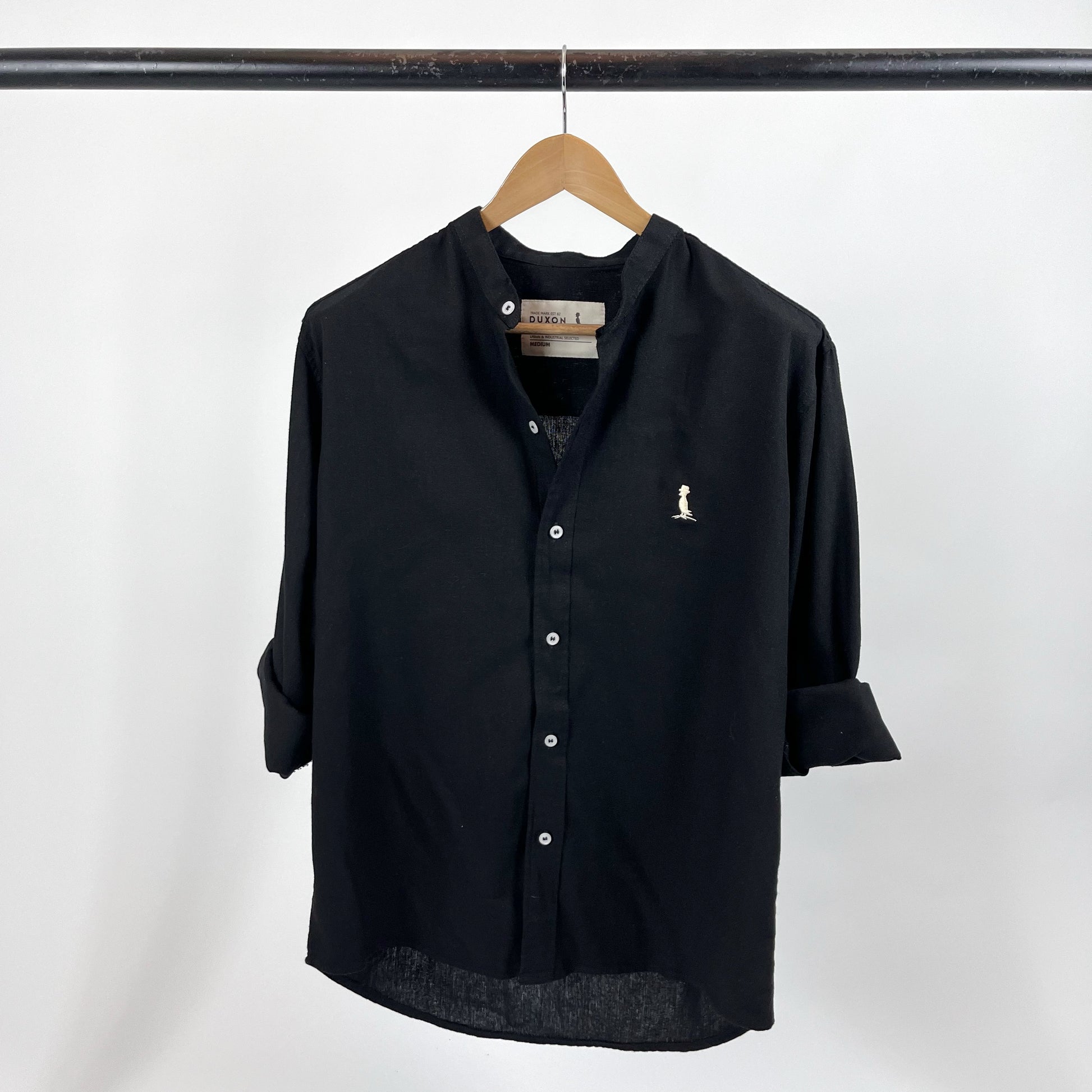 Camisa mao en Lino 100% color negra con logo en arena.